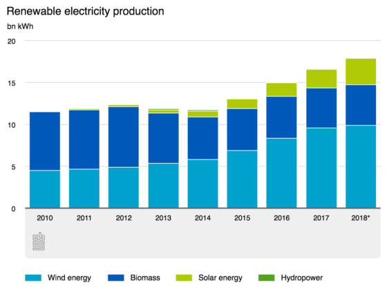 Solar power surges but wind still accounts for most green electricity
