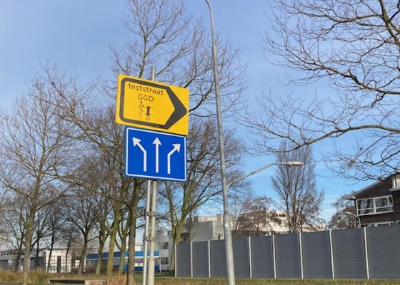sign outside the GGD test location at the RAI in Amsterdam